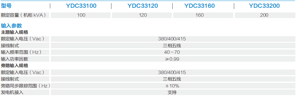 YDC3300系列 三進三出高頻在線式; 功率范圍:10kVA~200kVA